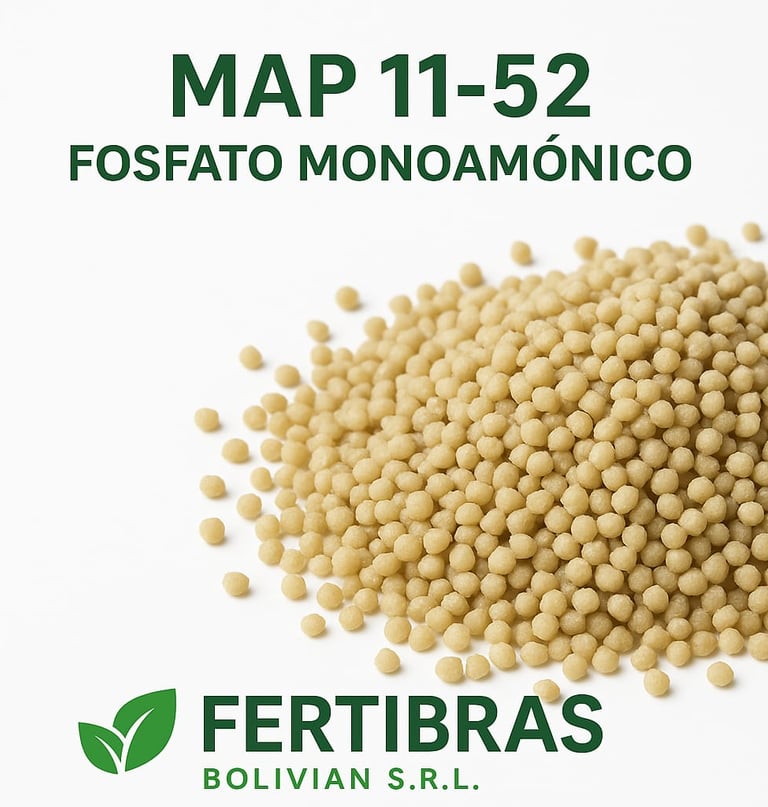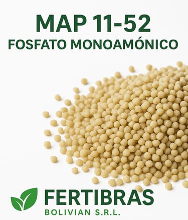 El Fosfato Monoamónico (MAP) es una fuente concentrada de fosforo y nitrógeno altamente soluble, utilizada en agricultura para morztar el desarrollo inicial de las plantas y fortalecimiento del sistemas radicular.